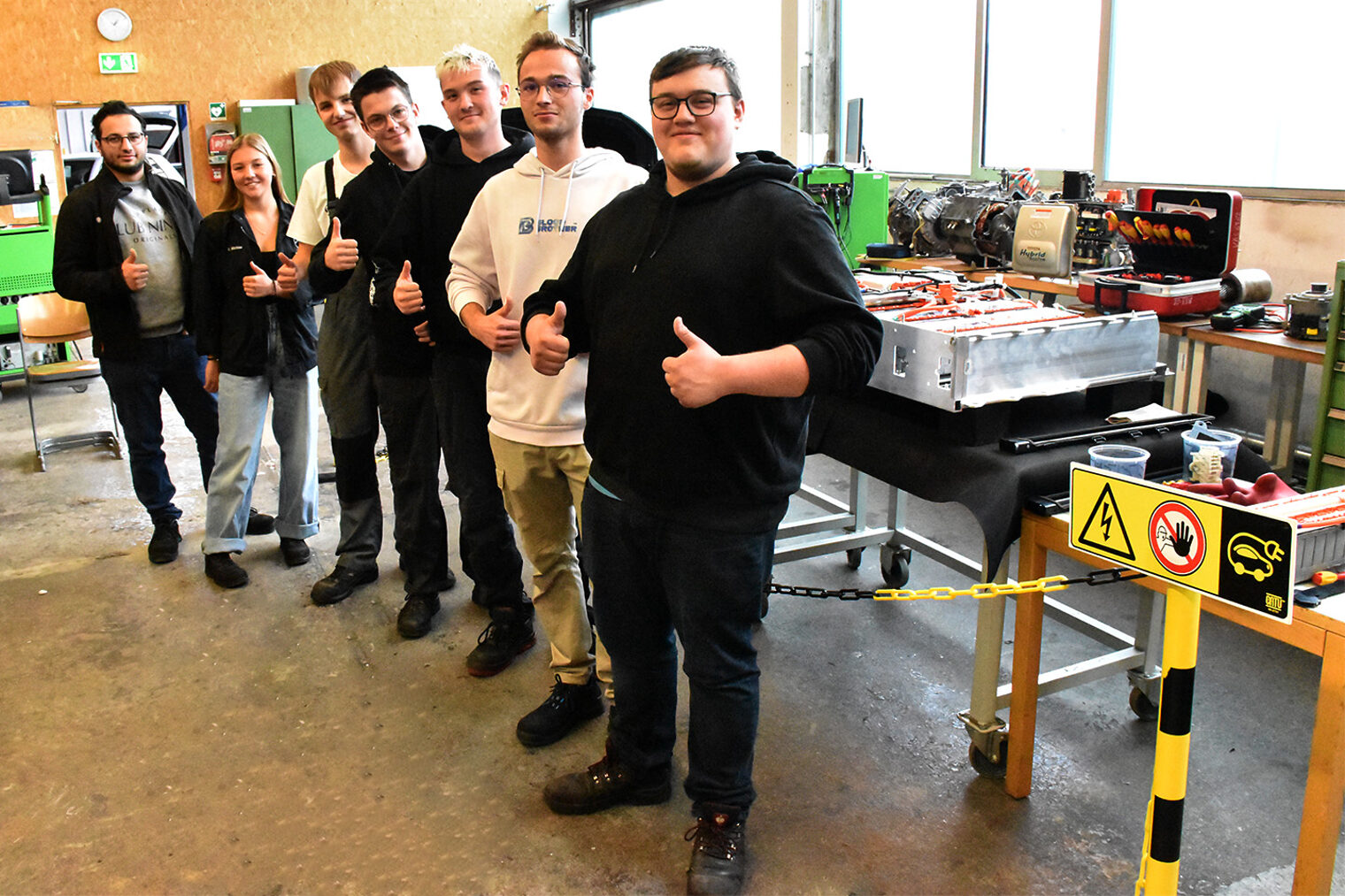 Im Bildungszentrum Würzburg erhalten Auszubildende eine Woche lang Einblicke in die Hochvolttechnik. Im Rahmen des überbetrieblichen Kurses geht es unter anderem um das Diagnostizieren von Fehlern und Störungen sowie die Sicherheit im Umgang mit der Technik.
