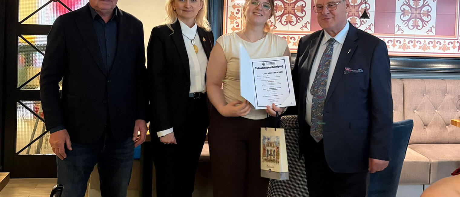 In diesem Jahr reisten Nachwuchshandwerkerinnen und -handwerker aus Unterfranken sowie aus Caen in Frankreich nach Danzig. Für das unterfränkische Handwerk nahmen unter anderem die Kfz-Mechatroniker Rai Roshan, Timo Baumann und Hannes Wirsing teil. In ihrem polnischen Gastbetrieb gewannen sie Einblicke in die gesamte Bandbreite ihres Berufs – vom klassischen Ölwechsel über den Kundenservice bis hin zum Austausch eines Zahnriemens. „Ich habe in meinem Austauschbetrieb tolle neue Leute kennengelernt“, notierte Rai Roshan in seinem Praktikumsbericht. Damit bringt er auf den Punkt, was den Junghandwerkeraustausch besonders macht: Er steht nicht nur für fachliche Weiterbildung, sondern auch für gelebte europäische Verständigung. Denn neben der Arbeit im Betrieb spielt der interkulturelle Austausch eine zentrale Rolle. Ob beim Eis essen und beim Spaziergang im Park mit den polnischen Kollegen – wie bei Friseurin Lena Schwab – oder bei der gemeinsamen Sprachanimation. Sie fand für die deutschen und französischen Teilnehmenden im Rahmen des Junghandwerkeraustausches an jedem Austauschabend statt. Dort wechselten nicht nur Vokabeln, sondern auch Zungenbrecher und Liedtexte auf Polnisch, Französisch und Deutsch die Seiten.