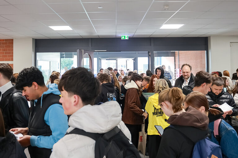Bei strahlendem Sonnenschein draußen und bester Stimmung drinnen erlebten rund 3.000 Besucherinnen und Besucher am Samstag, 7. März 2026, einen spannenden und abwechslungsreichen Macher-Tag im Bildungszentrum Würzburg. Über 70 Ausbildungsbetriebe aus der Region Würzburg, Kitzingen und Main-Spessart präsentierten praktische Einblicke in rund 50 verschiedene Ausbildungsberufe des Handwerks: die Besucherinnen und Besucher konnten an den Stationen beispielsweise hobeln oder auch mit einem Laser gravieren, Bagger fahren, Rundbögen mauern, Bilderrahmen bauen, Hefezöpfe flechten und backen und vieles mehr. „Handwerksberufe praktisch ausprobieren und so herausfinden, ob der Beruf zu den eigenen Talenten passt – das ist nun seit fünf Jahren die Essenz des Macher-Tags“, erläutert Silke Waterstrat, Koordinatorin für den Tag des Handwerks an bayerischen Schulen bei der Handwerkskammer für Unterfranken, unter dessen Dach der Macher-Tag stattfindet.