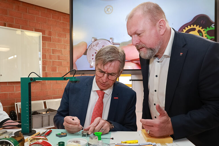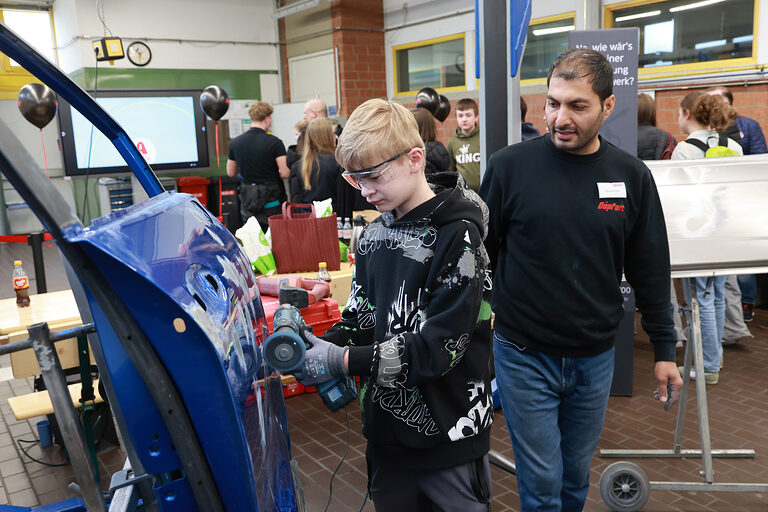 Bei der offiziellen Eröffnung des Macher-Tags begrüßte Handwerkskammer-Präsident Michael Bissert zahlreiche Ehrengäste aus Politik, dem handwerklichen Ehrenamt sowie weiterer Partnerinstitutionen. „Es ist toll zu sehen, mit wie viel Einsatz unsere Betriebe, die Innungen, die Nachwuchswerber und Ausbilder der Handwerkskammer, die Schulen und viele andere Akteure hier dabei sind“, betonte er bei seiner Begrüßung. Von diesem Engagement konnten sich die Ehrengäste auch selbst beim anschließenden Rundgang überzeugen.