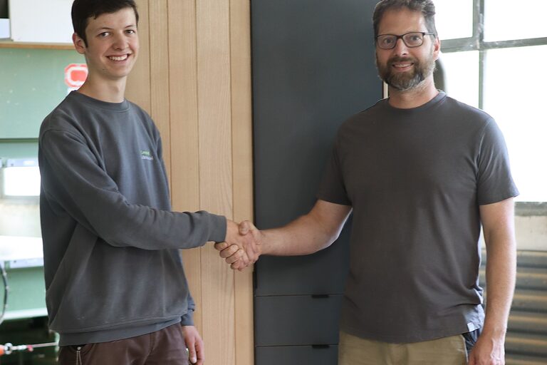 Die Ausbildung vermittelt fundierte Kenntnisse in der Holzbearbeitung – von traditionellen Handwerkstechniken bis zur Umsetzung individueller Möbelprojekte. Im Familienbetrieb liegt der Schwerpunkt auf der Verarbeitung von regionalem Massivholz. Auszubildende lernen die Vielseitigkeit des Schreinerhandwerks kennen, von der Planung über die Fertigung bis zur Montage. - Aus welchen Gründen haben Sie sich damals entschieden Ihrem heutigen Kammersieger einen Ausbildungsvertrag anzubieten?