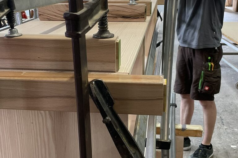Unser Auszubildender Florian Schmitt hat uns bereits während seines Praktikums durch sein fachliches Interesse, sein handwerkliches Geschick und seine überdurchschnittliche Motivation für den Schreinerberuf überzeugt. Ergänzt wurde dieser Eindruck durch seine Zuverlässigkeit, Lernbereitschaft und sein verantwortungsbewusstes Auftreten, sodass wir in ihm von Anfang an das Potenzial für eine erfolgreiche Ausbildung gesehen haben.